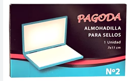 Descripción Producto: ALMOHADILLA PARA SELLOS DE METAL Marca: PAGODA Medida: 7X11 CM Modelo: Nº2 Cantidad: 1 UNIDAD Usos: VARIOS