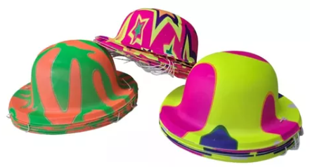 Características principales Modelo Gorro Bombin Estampado Tipo de gorro de fiesta Bombin Diseño Estampado Bombin Estampado Formato de venta Pack Cantidad de packs 1 Unidades por pack 25 Otras características Edad 1 a 99 años Material Plástico Con luces No